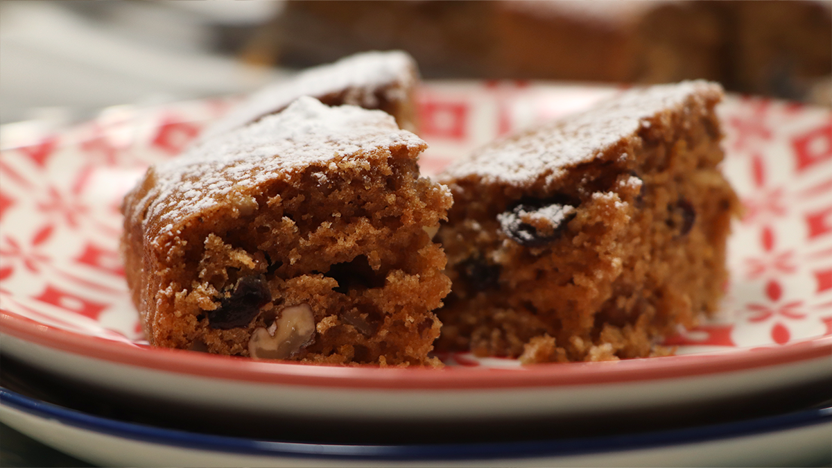 Στο τέλος, ρίχνουμε τα καρύδια και τις σταφίδες. Ακατεύουμε με σπάτουλα.