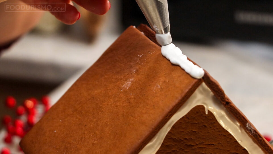 Για την συναρμολόγηση των πλευρών του μπισκοτόσπιτου είναι πιο εύκολο να έχετε ένα σφιχτό γλάσο. Ενώ για την διακόσμηση του σπιτιού μετά, χρειάζεται ελαφρώς πιο ρευστό γλάσο, οπότε μπορείτε να το αραιώσετε.